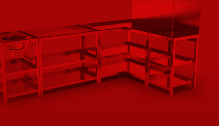 Arbeitstische in Systembauweise z.B. für den Mischraum.