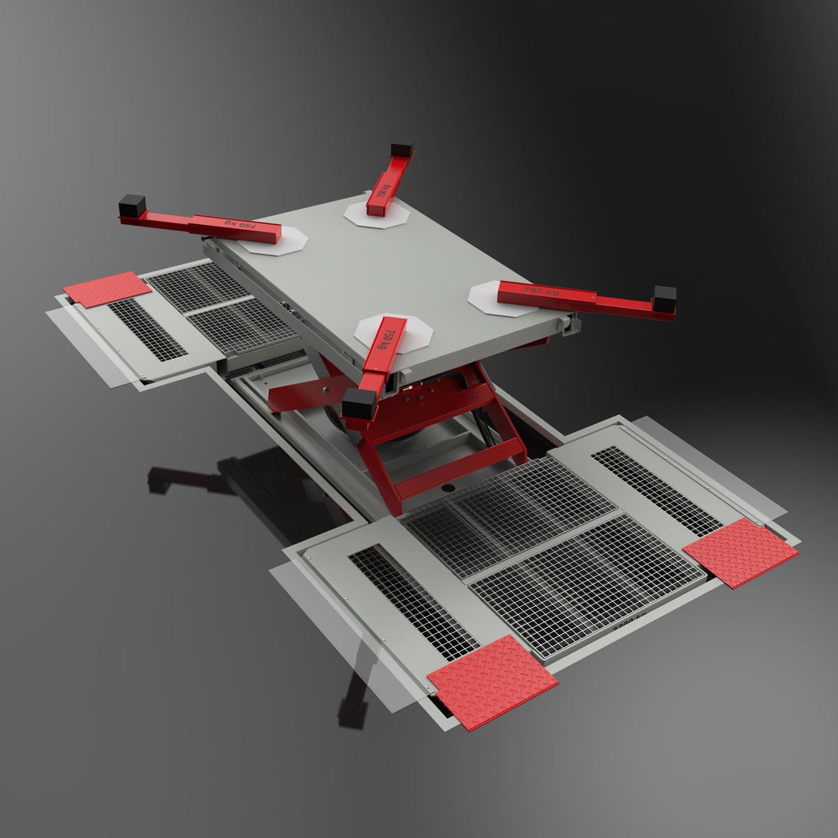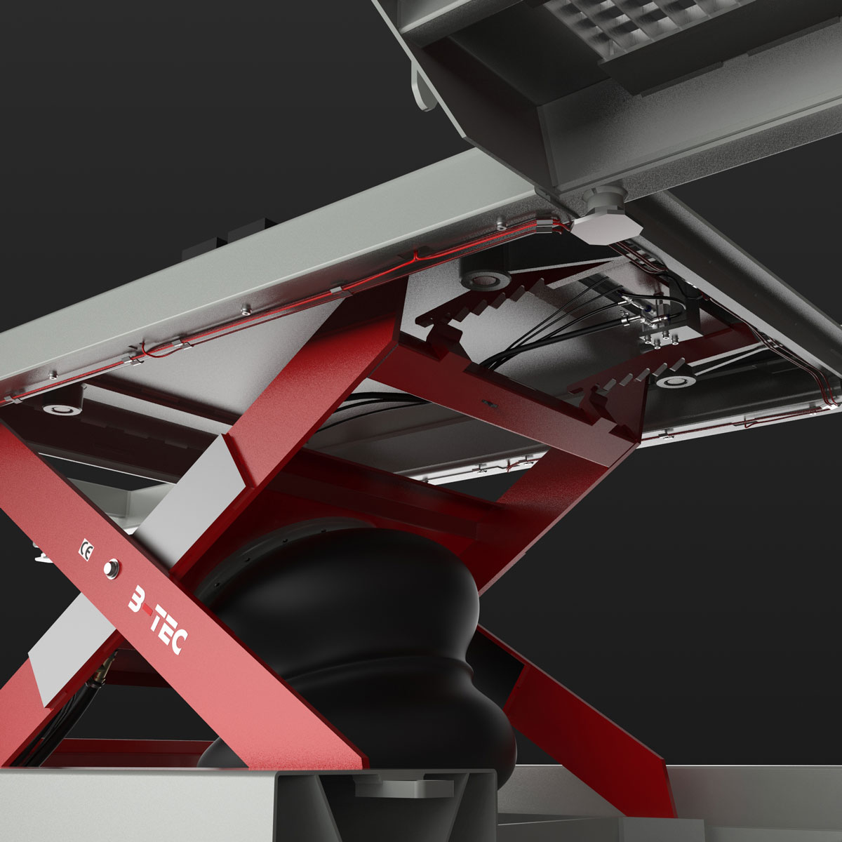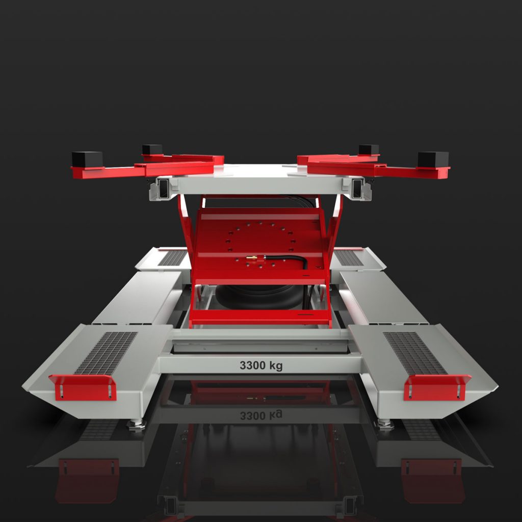 Im Vergleich zu hydraulischen Bühnen in der KFZ-Werkstatt, arbeiten unsere pneumatischen Hebebühnen komplett ohne Öl oder andere lackbenetzungsstörende Substanzen – unverzichtbar im Lack- und Karrosseriebereich.