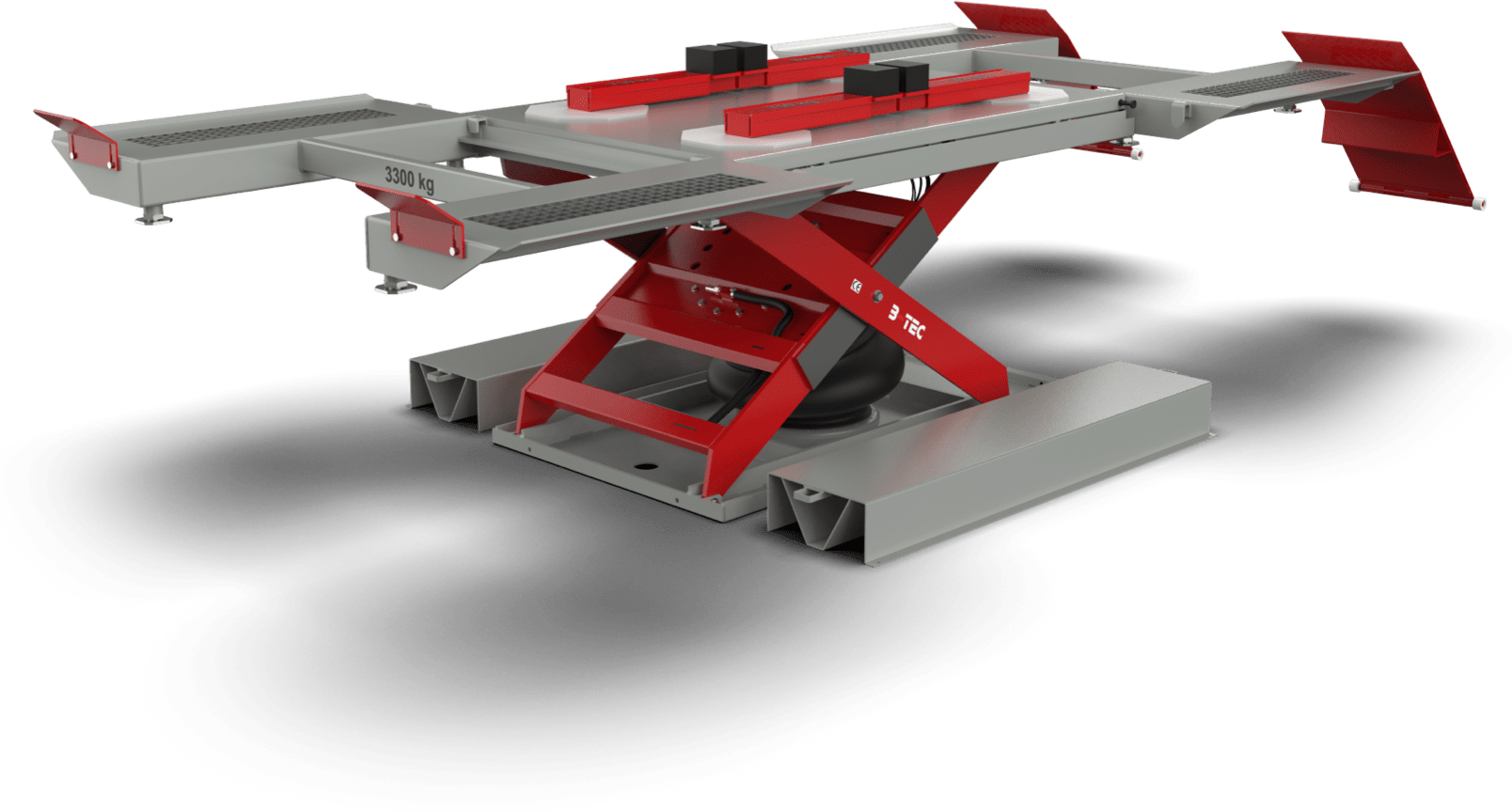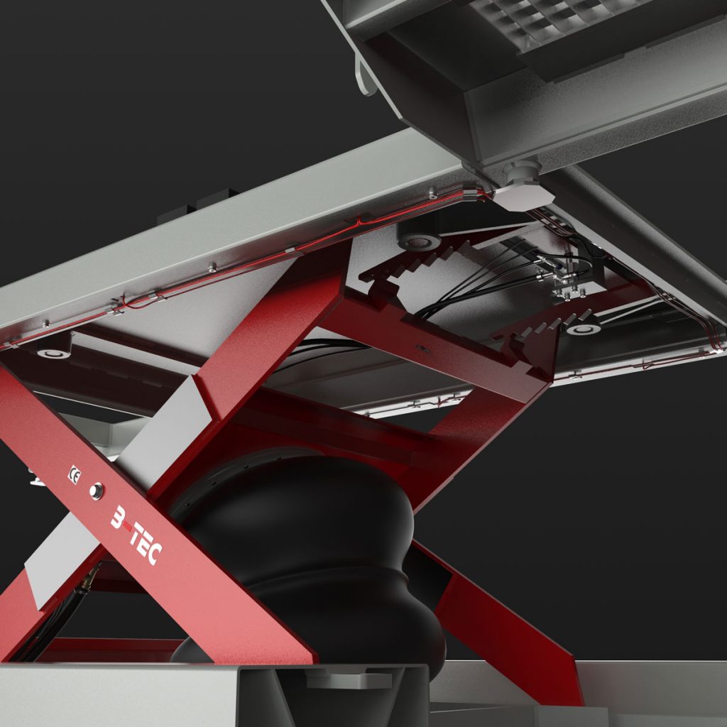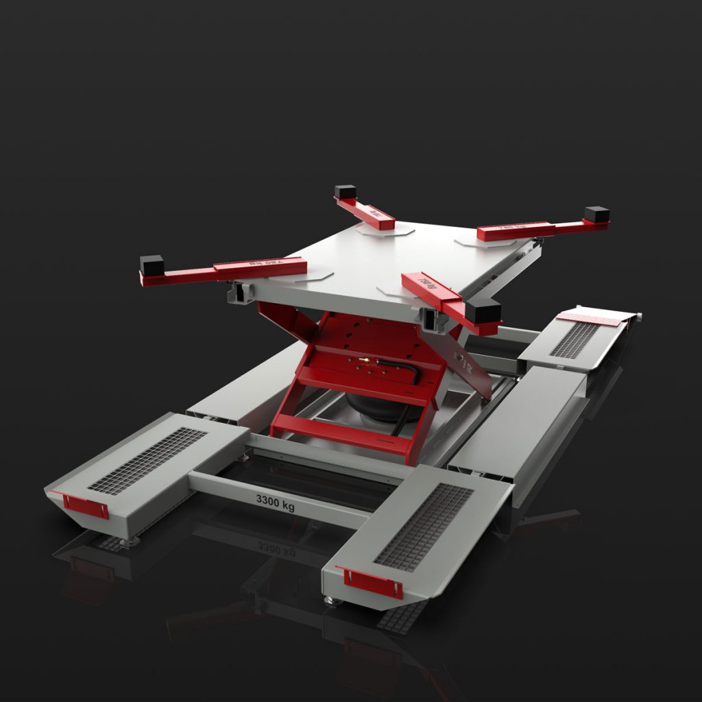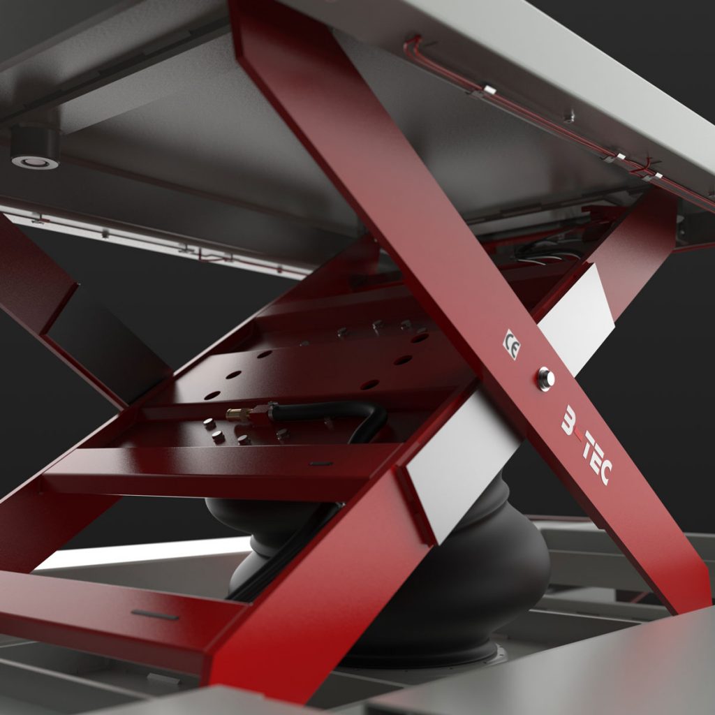 Mit der pneumatischen B-TEC Carry Twin KFZ-Hebebühne wird das Arbeiten am Schwellerbereich oder Radkasten des Fahrzeuges zum Kinderspiel.