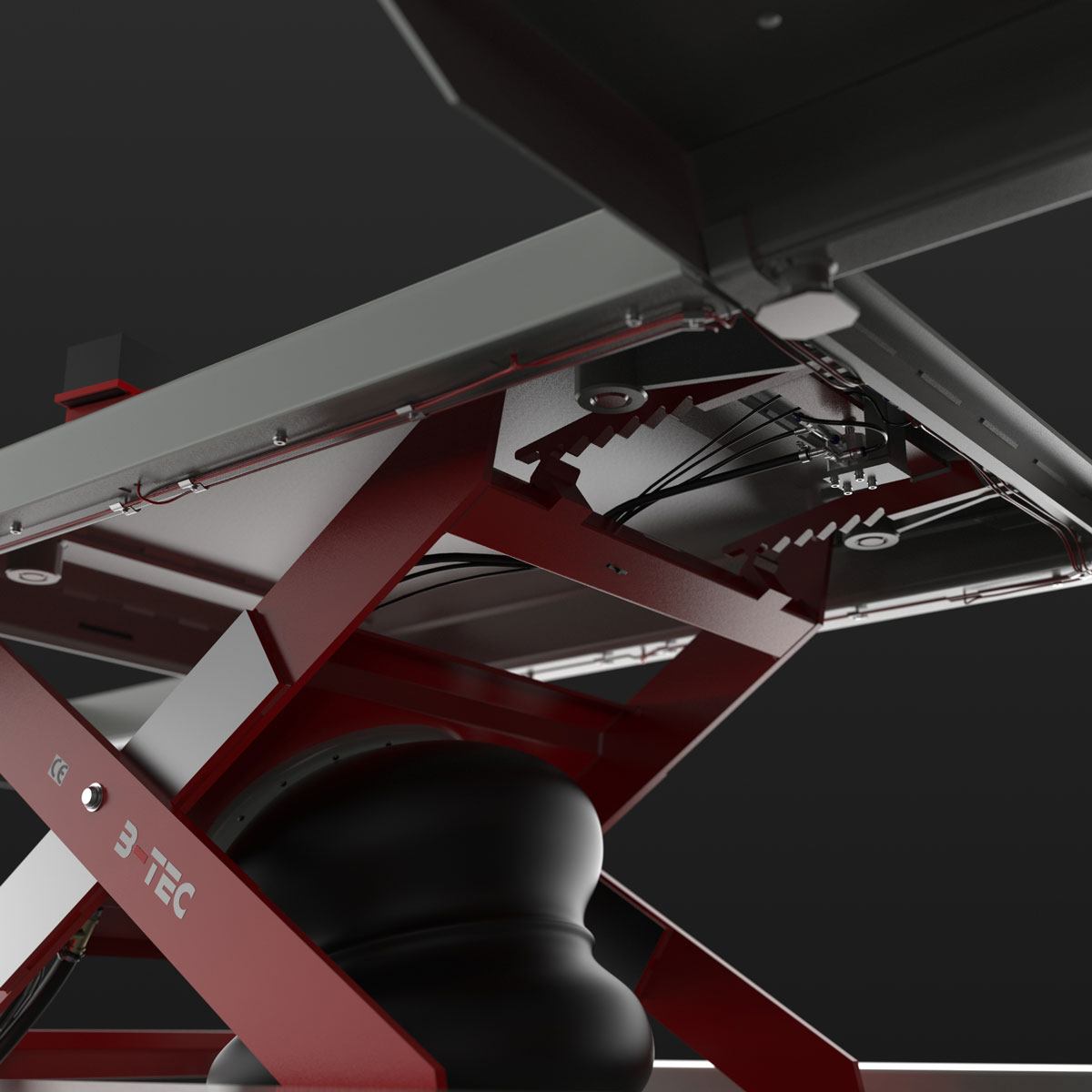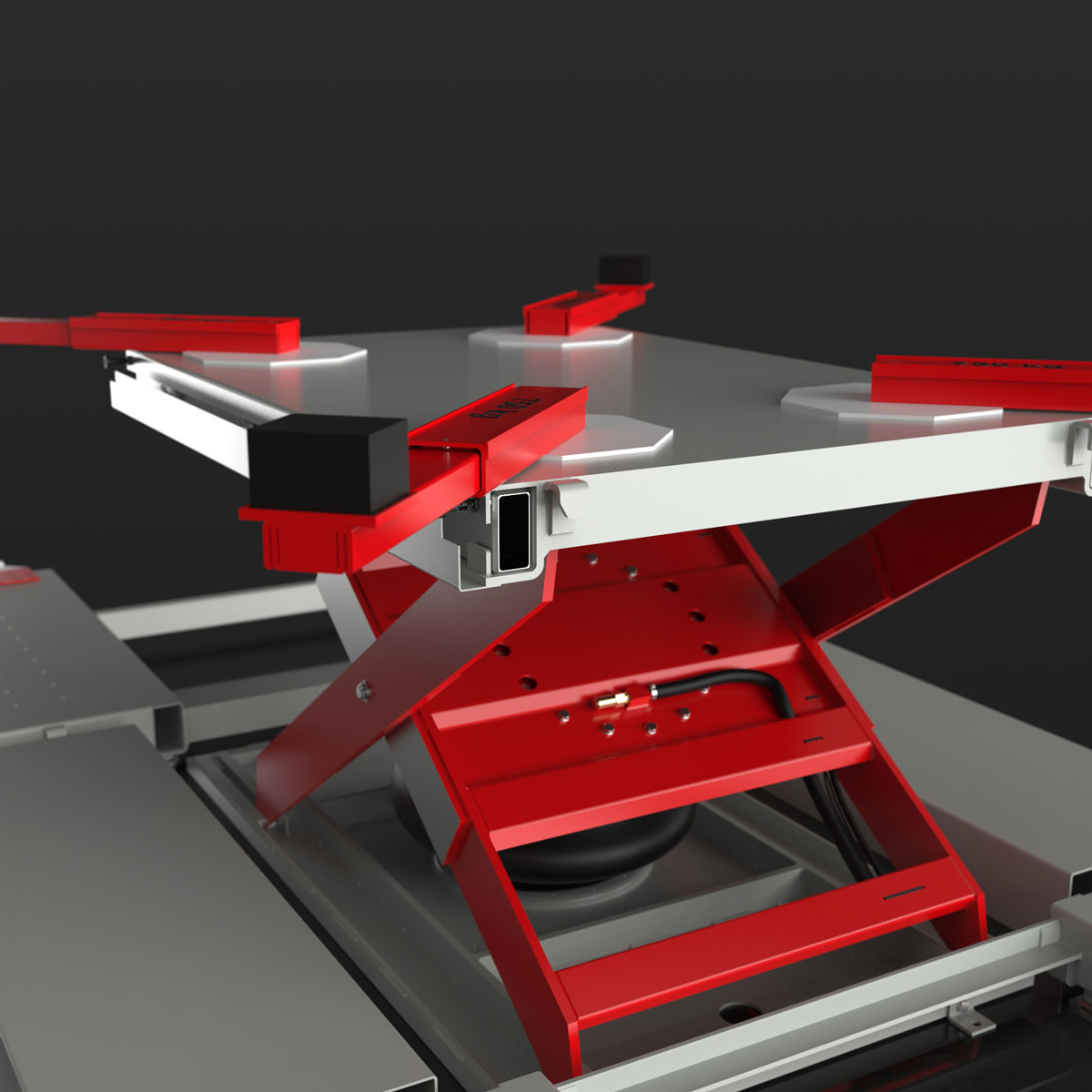 Im Vergleich zu hydraulischen Bühnen in der KFZ-Werkstatt, arbeiten unsere pneumatischen Hebebühnen komplett ohne Öl oder andere lackbenetzungsstörende Substanzen – unverzichtbar im Lack- und Karrosseriebereich.