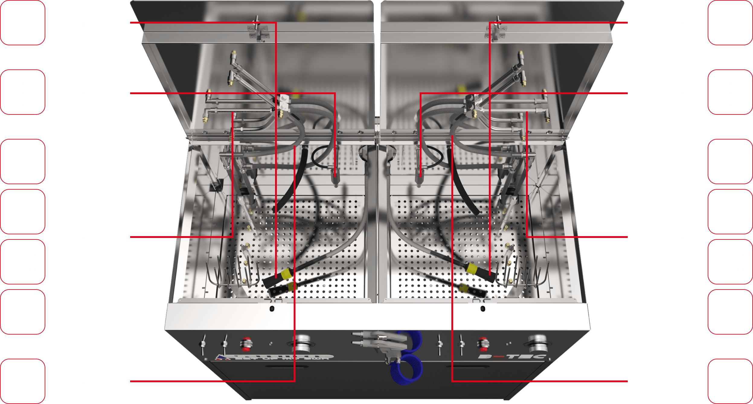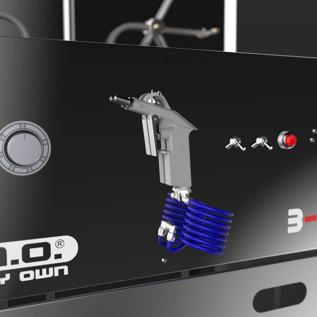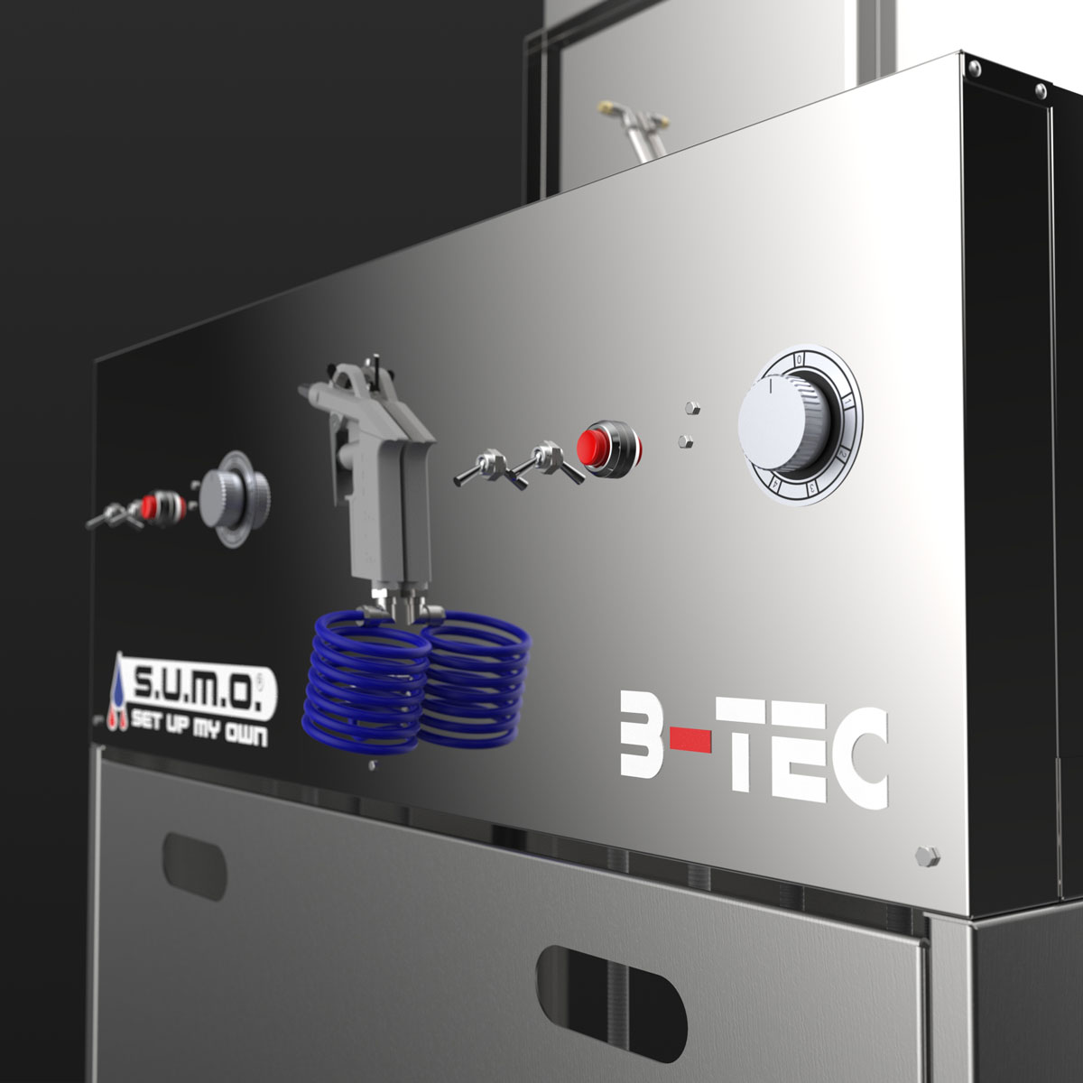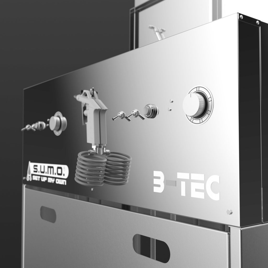 Das Basismodul des S.U.M.O. besteht aus zwei kompakten, unabhängigen Waschräumen, der vertraut starken B-TEC Absaugung für beide Geräteseiten sowie einer universellen Aus- und Abblaspistole.
