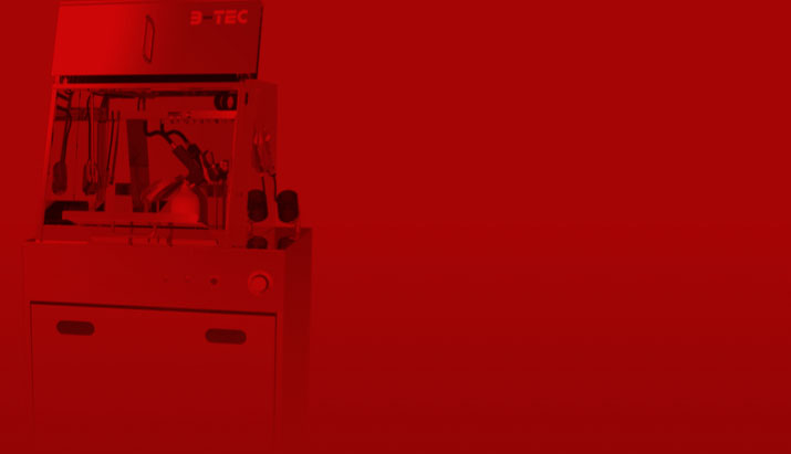 Der helle Reinigungsbereich und die kraftvolle B-TEC Absaugung mit tiefgezogenem Abluftkanal, um die Lösemitteldämpfe dort abzusaugen, wo sie sich befinden – am Boden des Waschraums – führen zu höchster Anwenderfreundlichkeit.