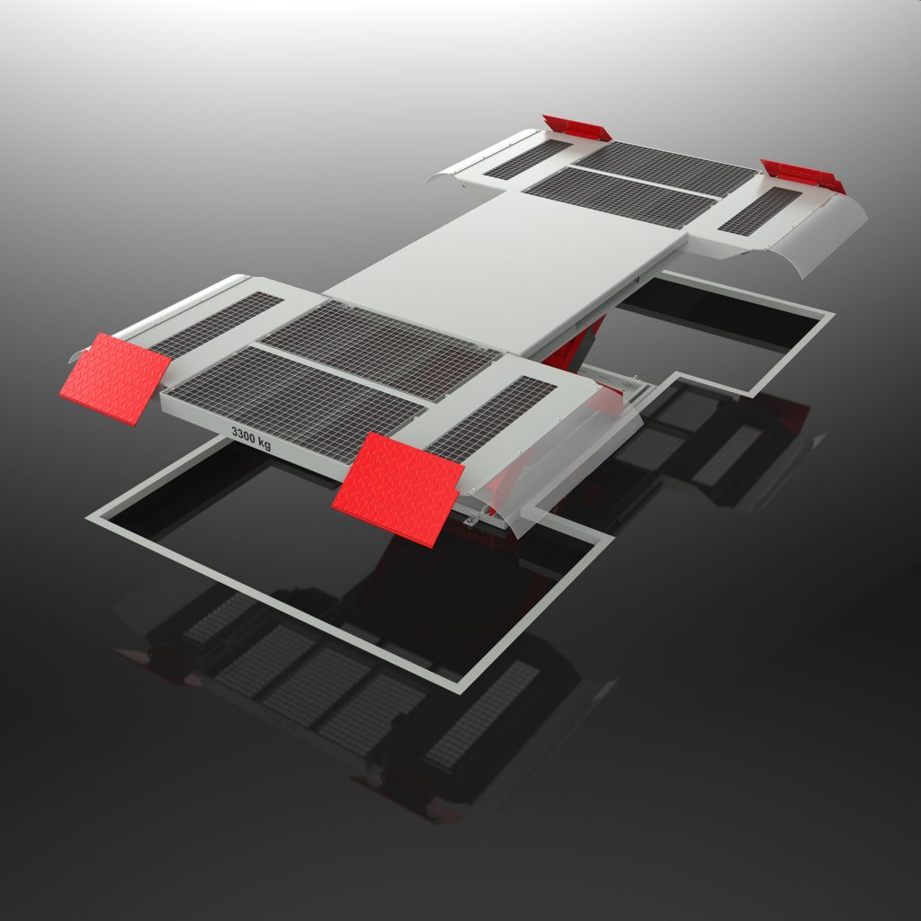 - EB version: In-ground lift for floor-level installation in concrete or gratings (paint booth)