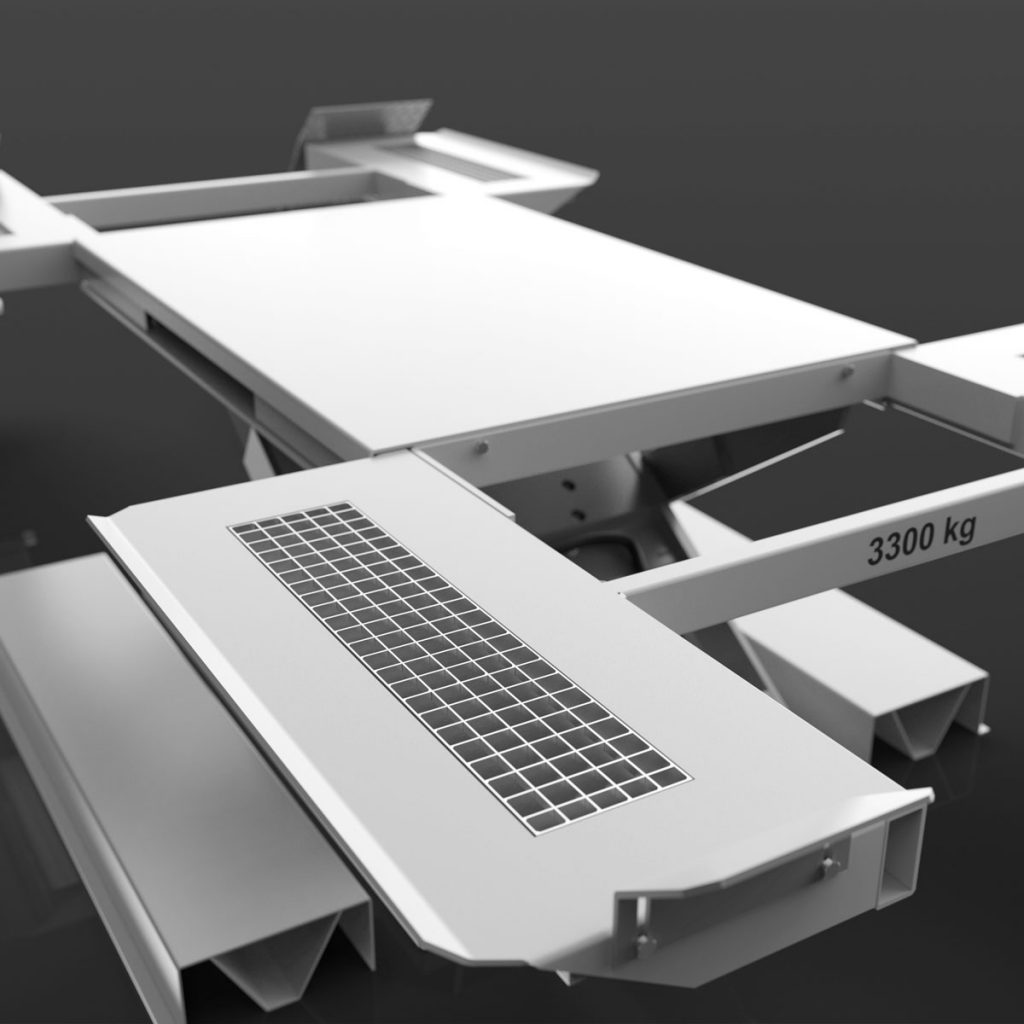 - S-version: surface mounted lift with gratings in the outriggers for draining snow and water