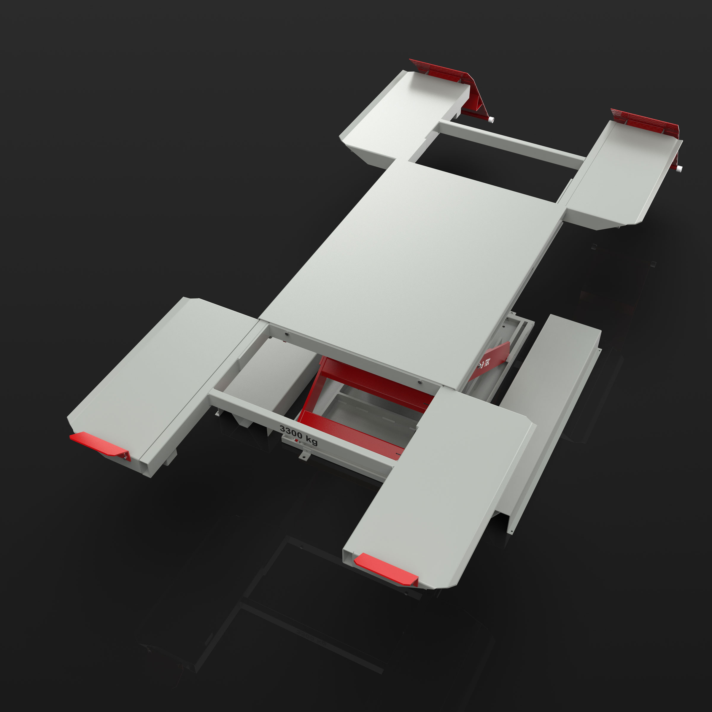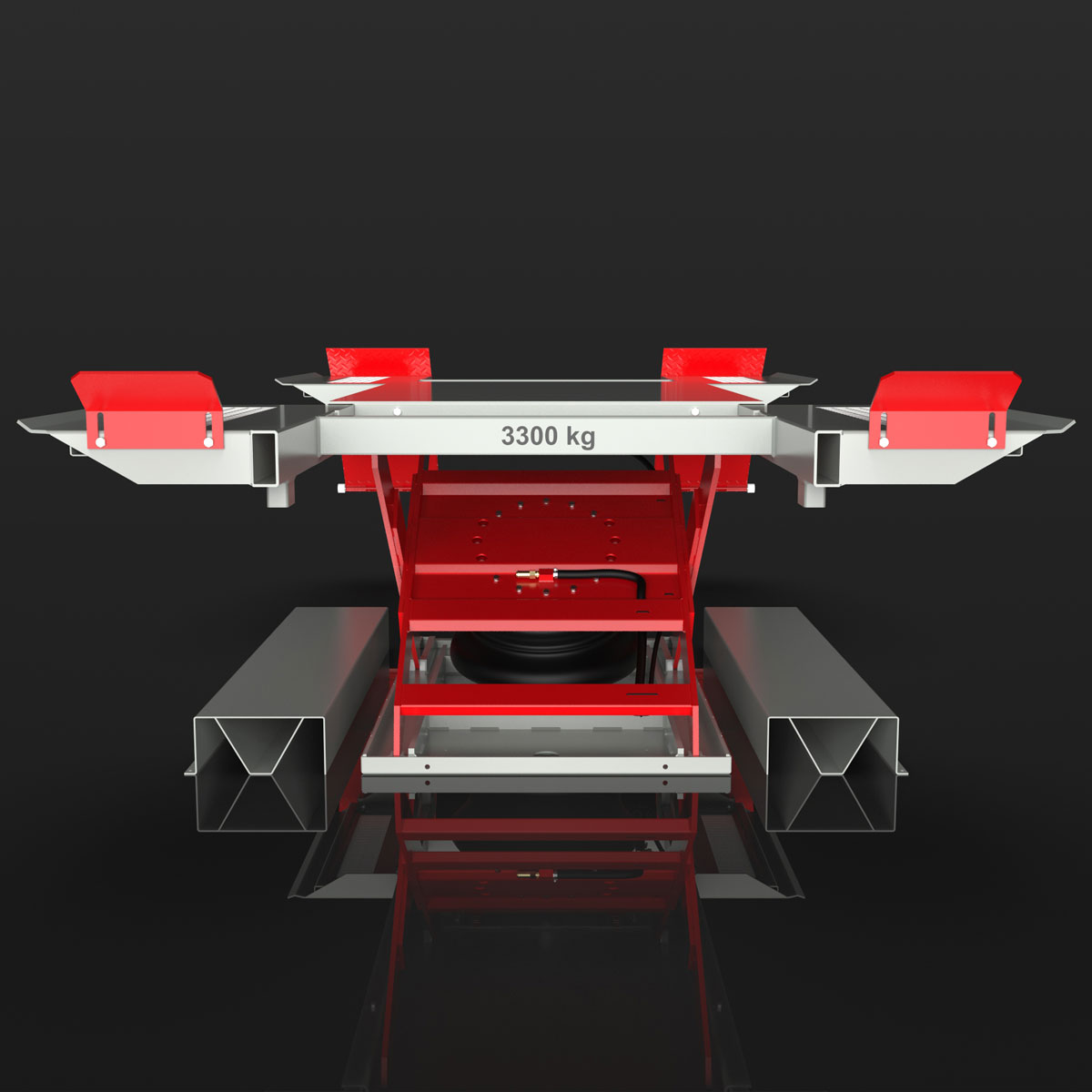 Pneumatic lift for lifting vehicles standing on wheels with 3.3 tonnes lifting capacity – surface mounted or as in-ground version.