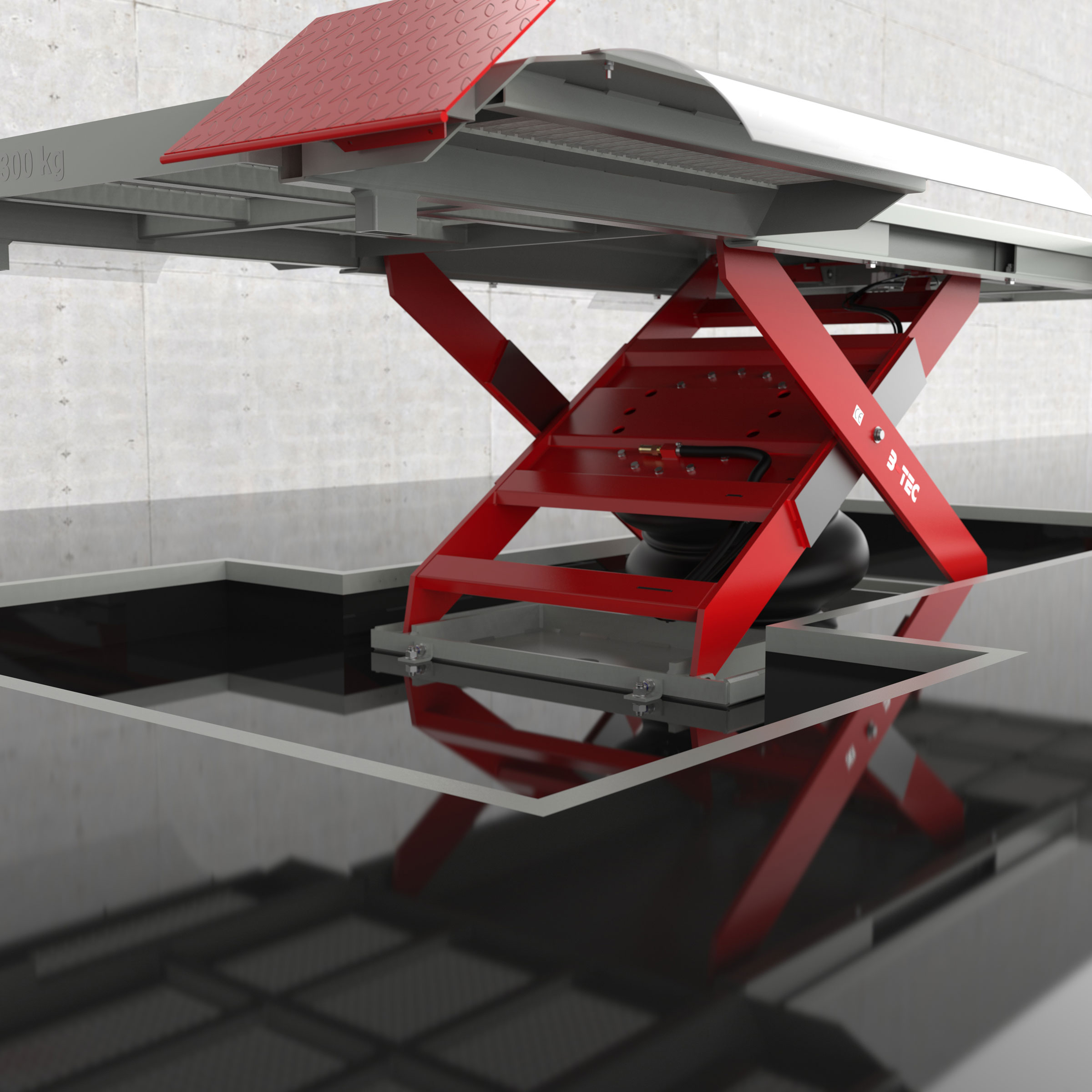 - EB version: In-ground lift for floor-level installation in concrete or gratings (paint booth)