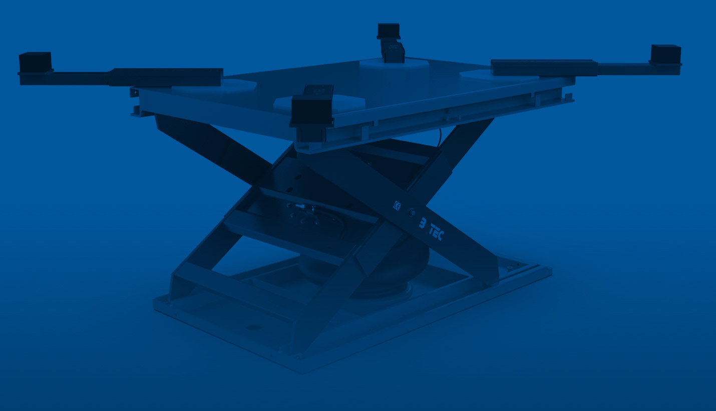 Pneumatic lift with up to 3 tonnes lifting capacity for wheel-free lifting using the jacking points of the vehicle – in-ground version.