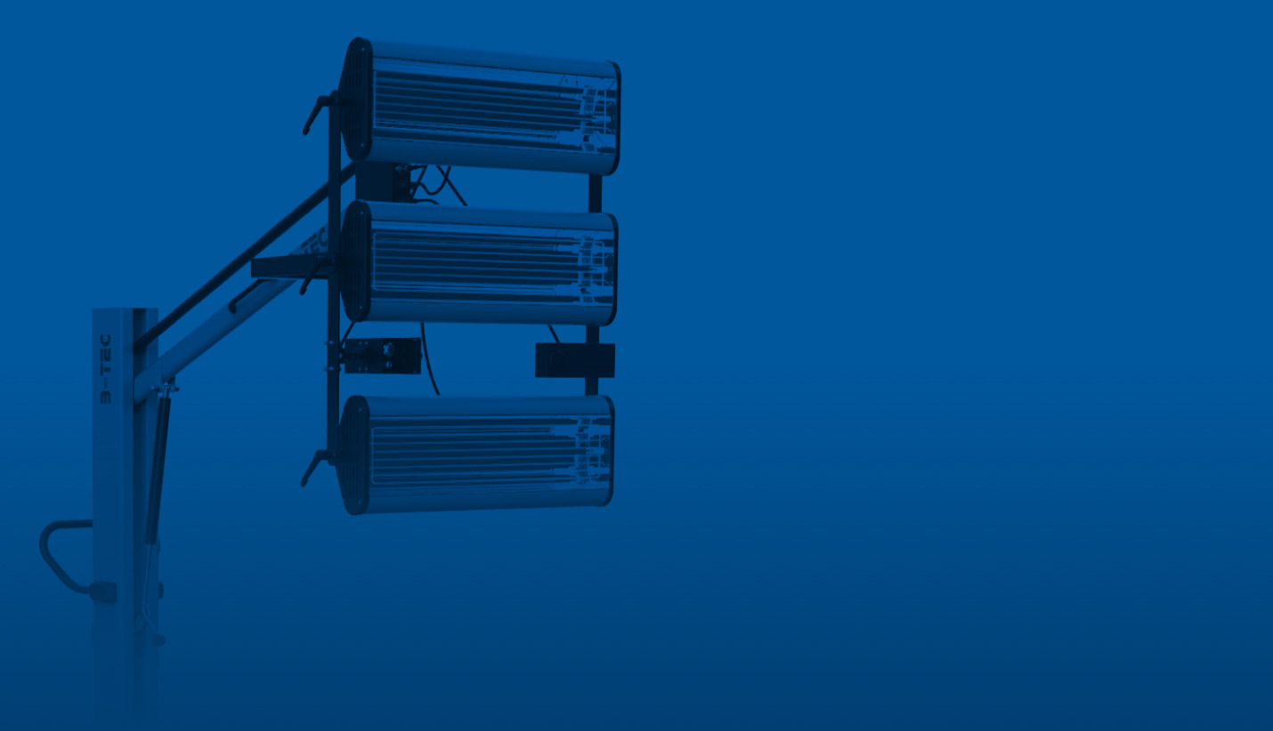 Like all B-TEC IR dryers (except for IR-X), the IR-B03 also features 2-stage drying (flashlight / continuous drying) to heat the coating gently from the inside to the outside, thus preventing coating problems such as “boiling” and “biting”.