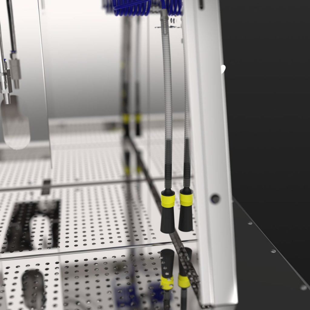 The ergonmic design with comfortable front access enables optimal viewing conditions on all features of the washer – without glass plates or bezels which prevent good visibility. Ergonomic and fast cleaner change due to moveable collection trays / bunds.
