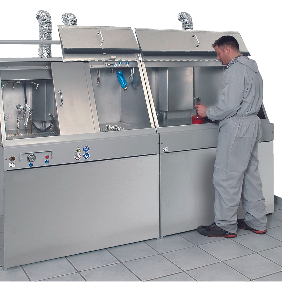 - Washers, work tables and other accessories from B-TEC can be combined individually and are perfectly matched in their dimensions – space-saving with optimized functionality!