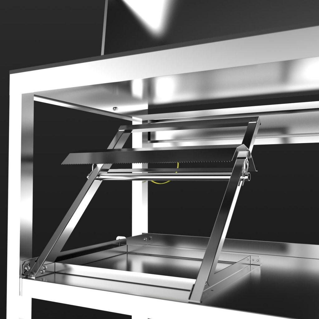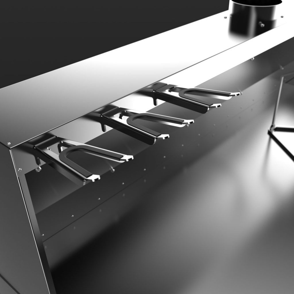 With the help of the deep extraction edge, the vapours are extracted exactly where they are located – at the surface of the work area.