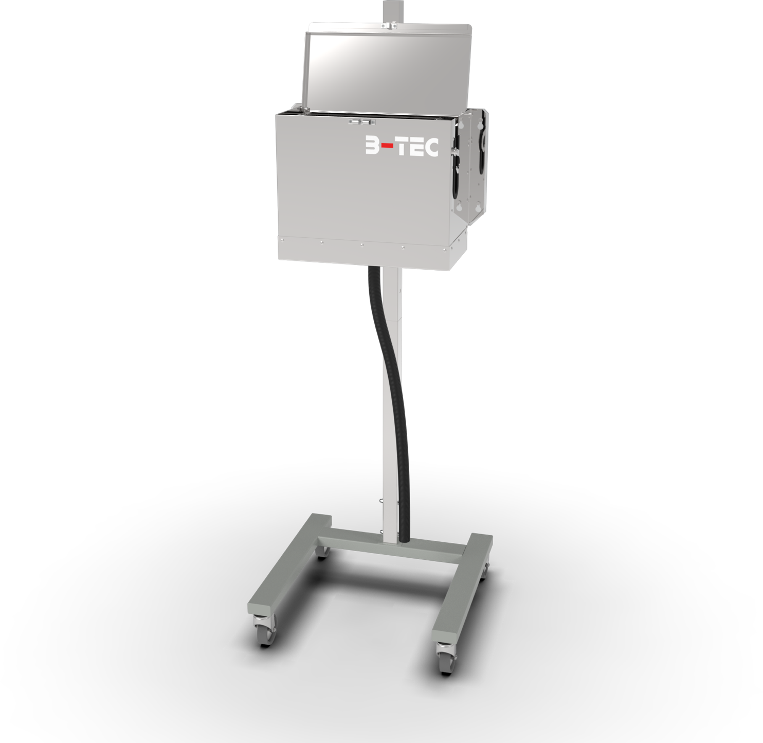 The S-800 can also be operated with all pump technologies. A mobile and height-adjustable base frame is part of the standard equipment. The S-800 can also be excellently combined with the SR-800 and R-800 washers for external cleaning – the complete cleaning station for gun and hose package.