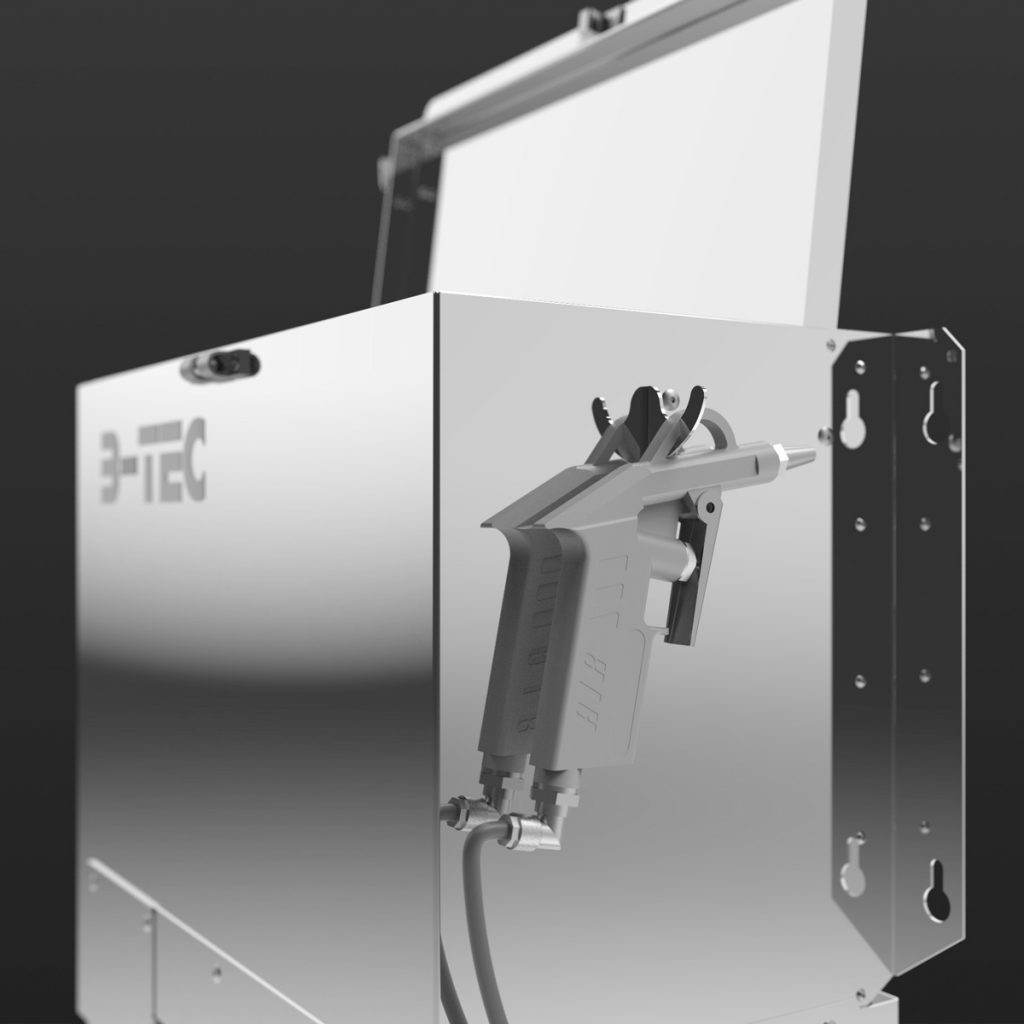 Opening of the spray / paint guns by a trigger clamp takes place inside the gun washer after the gun sits perfectly on the cleaning nozzle.