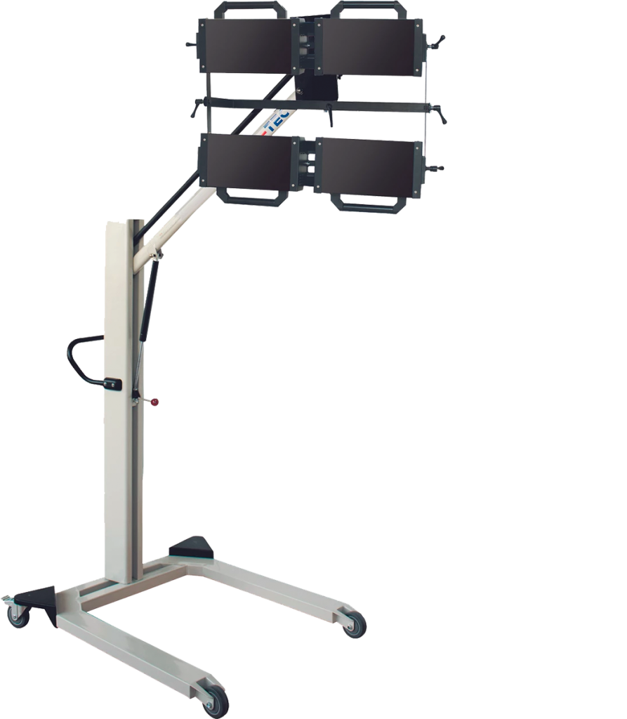 UV-A paint curing with tinted UV-B/-C filter glasses and 4 cassettes for large drying areas.